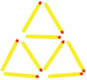 Cada equipo deberá recibir la siguiente consigna: «Sólo poseen 3 minutos para desplazar y reubicar dos fósforos y formar cinco triángulos». Al cumplirse el plazo se consulta si algún equipo logró el objetivo.